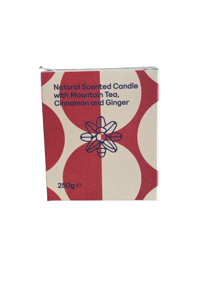 Natural Scented Candle with Mountain Tea, Cinnamon, and Ginger (250g)