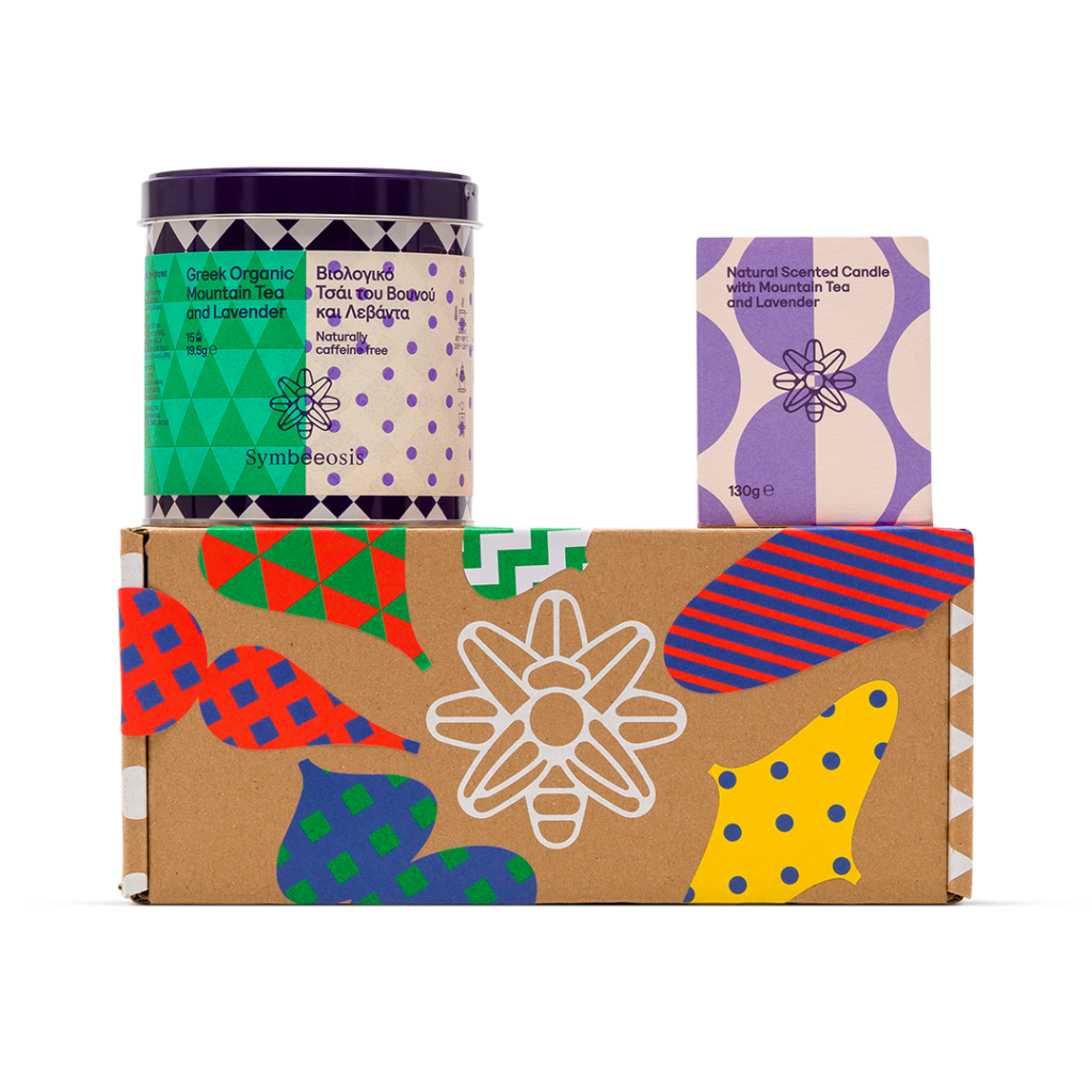 A warm and atmospheric festive pairing designed to inspire moments of relaxation and wellbeing. The Symbeeosis Organic Mountain Tea with lavender is naturally caffeine-free, offering a floral aroma and a smooth, earthy taste in 15 fragrant 1.3g pyramids. The natural 130g soy candle, infused with notes of mountain tea, cinnamon, and ginger, completes the experience—filling the space with a comforting winter scent.